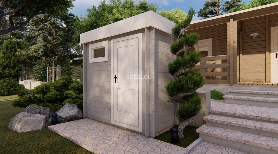 Mini-Hütte mit Flachdach, 28 mm starken Wänden und 19 mm starken Bodenbrettern, 2,0 m² groß. Ideal zur Aufbewahrung von Werkzeugen oder als kompakter Nutzraum.