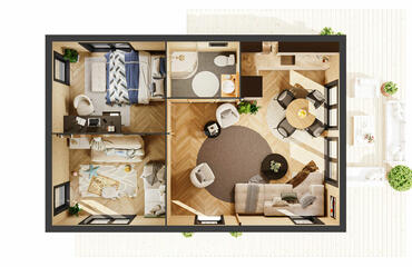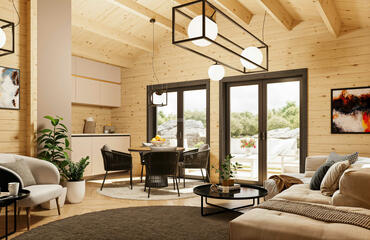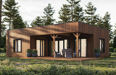 Minimalist and modern in design, this stylish house includes 2 wide bedrooms, an open-plan living room with a kitchen area, and full-height windows that offer a stunning panoramic view. The layout blends comfort and functionality, making it ideal for both everyday living and peaceful retreats.