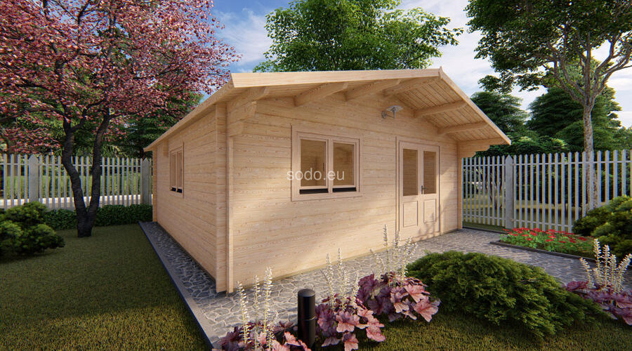 Una casetta con tetto a due falde, pareti da 44 mm e pavimento da 19 mm, che offre uno spazio interno di 21,2 m². I suoi vetri economici e la disposizione pulita la rendono adatta a un uso flessibile in giardino o come ripostiglio leggero.