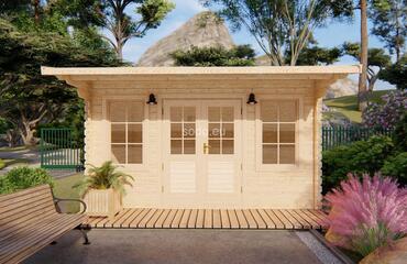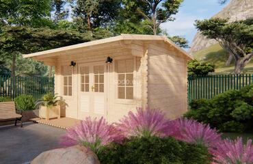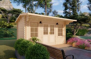 Una casetta da giardino compatta con tetto a due falde e pareti dello spessore di 28 mm, che offre uno spazio interno di 10,8 m². Costruita con assi del pavimento da 19 mm, è ideale come piccolo studio, ripostiglio o camera per gli ospiti.