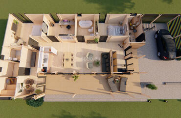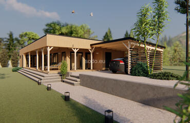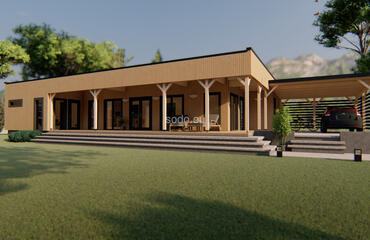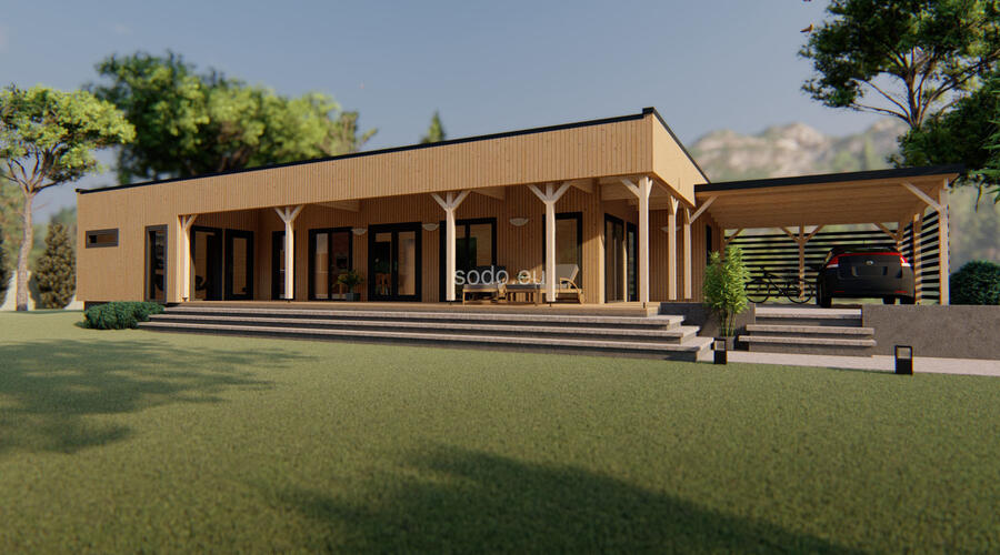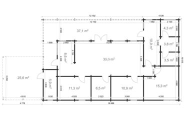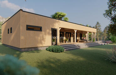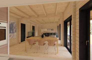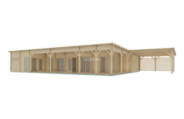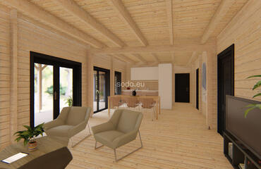 Questa villa spaziosa offre 202,9 m² di spazio interno con tetto piano e pareti da 58 mm. Comprende 6 stanze e pavimenti da 19 mm, ideali per una vita lussuosa.
