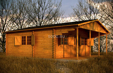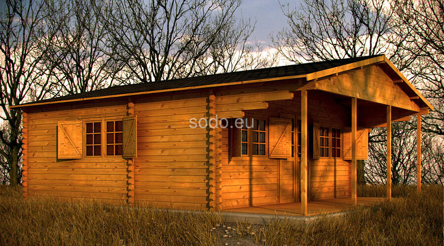 Det biedt 32,1 m² interne ruimte onder een zadeldak, gebouwd met 68 mm dikke muren en 28 mm dikke vloerdelen. De open indeling is geschikt voor woon-, studio- of recreatieve toepassingen.