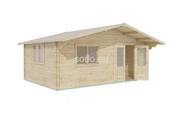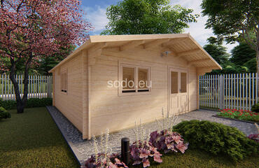 Dit tuinhuis met zadeldak heeft 44 mm dikke muren en 19 mm dikke vloerdelen en biedt 32,4 m² aan binnenruimte. Met dubbele beglazing en een geïntegreerde toiletruimte is het ideaal als volledig uitgeruste tuinkantoor of gastenverblijf.