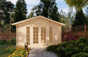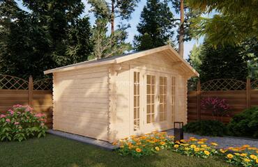 Dit uitgebreide Vala-model biedt 10,8 m² binnenruimte met een zadeldak en 28 mm houten wanden. Het is gebouwd met 19 mm vloerdelen en is ideaal als tuinkantoor of gastenkamer.