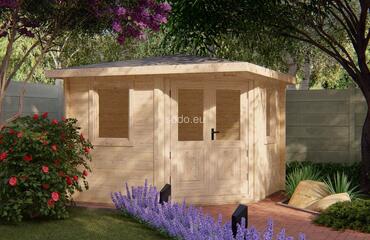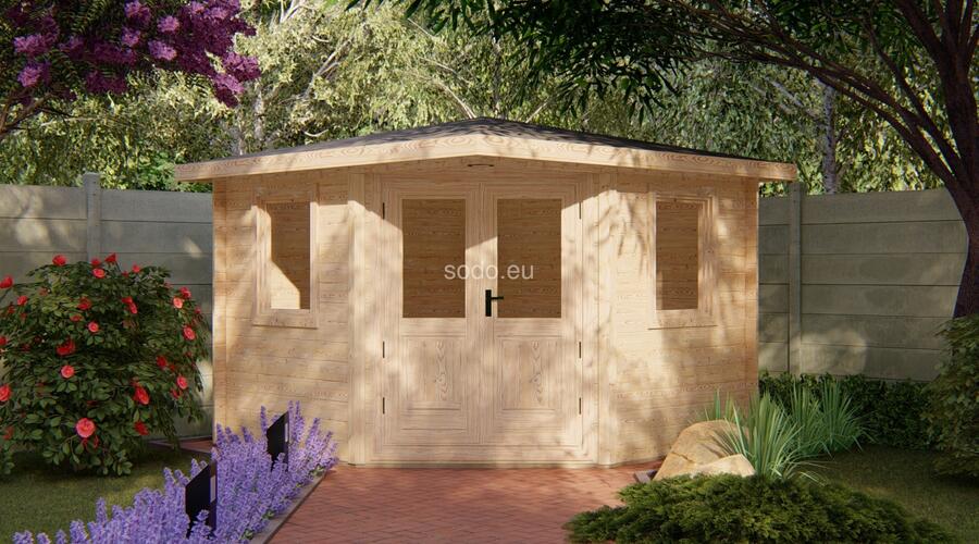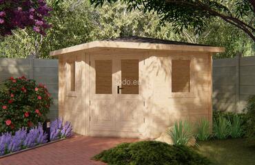 Esta cabaña con techo a cuatro aguas tiene paredes de 28 mm y suelos de 19 mm, lo que ofrece un espacio interior de 7,1 m². Su diseño compacto es ideal para decorar el jardín o como almacén ligero. Camión completo: 32 unidades. Tamaño del paquete: (650 x 3400 x 1200)