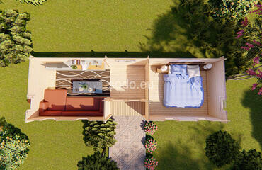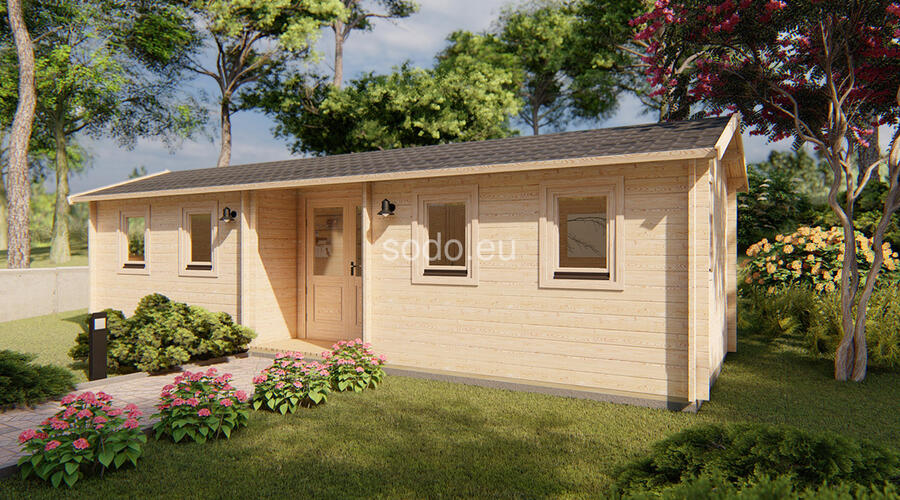 Esta caseta de jardín con techo a dos aguas cuenta con paredes de 44 mm de grosor y suelos de 19 mm, lo que ofrece un espacio interior de 21,8 m². Con doble acristalamiento y una distribución de varias habitaciones, es ideal para una amplia oficina en casa, alojamiento para invitados o refugio creativo.