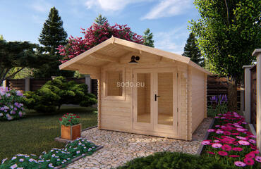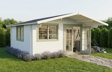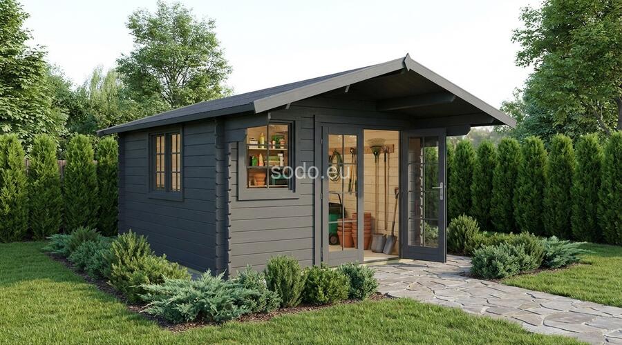 Alva 3x4 combina un tejado a dos aguas con paredes de cristal simple de 28 mm y tablas de suelo de 19 mm. Con 10,27 m² de espacio interior, es una solución práctica para almacenar herramientas de jardín o como taller compacto. Camión completo: 16 unidades. Tamaño del paquete: (600 x 5400 x 1200)