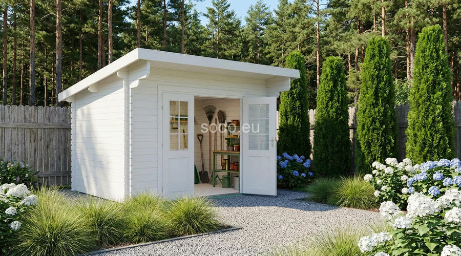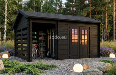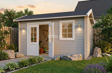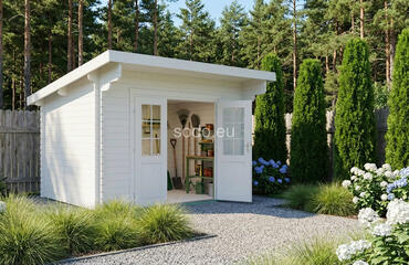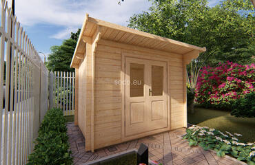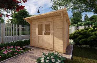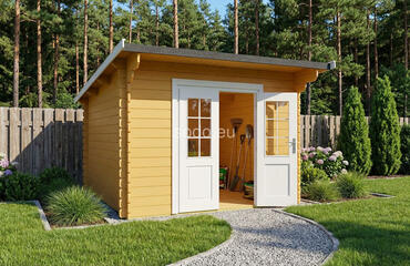 Este modelo ofrece 4,8 m² de superficie interior, con paredes de 28 mm de grosor y tablas de suelo de 19 mm. Es una solución práctica para pequeños jardines o para guardar herramientas. Camión completo: 32 unidades. Tamaño del paquete: (600 x 3300 x 1200)
