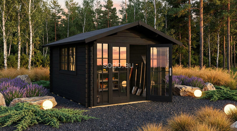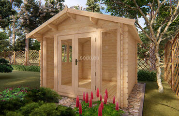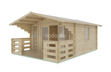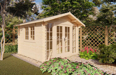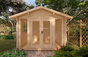 Esta cabaña con techo a dos aguas tiene paredes de 28 mm y suelos de 19 mm, lo que ofrece un espacio interior de 7,5 m². Su distribución es ideal para un pequeño refugio o una oficina en el jardín. Camión completo: 24 unidades. Tamaño del paquete: (650 x 3700 x 1200)
