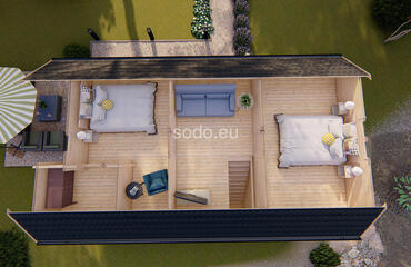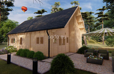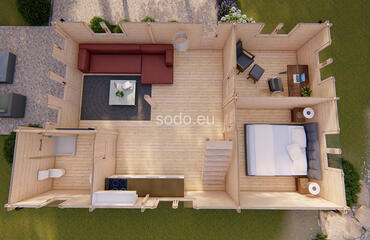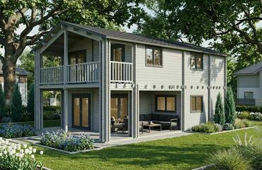 Felix ofrece 99,9 m² de espacio interior. Con paredes de 68 mm y tablas de suelo de 28 mm, está diseñado para una vida espaciosa o para uso comercial.