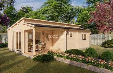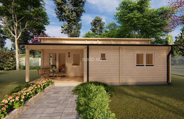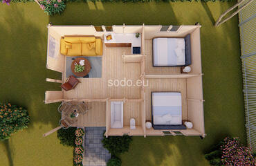 Diseñado con paredes de abeto de 68 mm y tablas de suelo de 28 mm, este modelo ofrece 44,4 m² de espacio interior y una terraza de 6,1 m². Un tejado a dos aguas de 3,1 m de altura alberga una distribución con 2 dormitorios, una cocina y una sala de estar, ideal para una vida familiar compacta. Camión completo: 4 unidades. Tamaño del paquete: (870 x 6000 x 1200), (870 x 6000 x 1200), (900 x 6000 x 1200), (ST500 x 2200 x 1700)