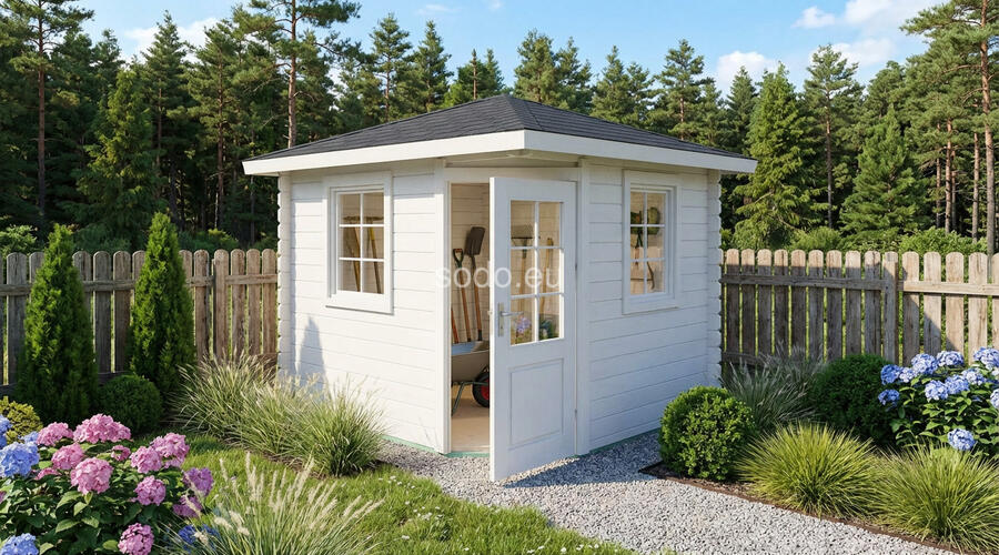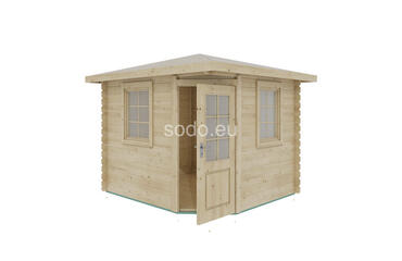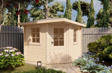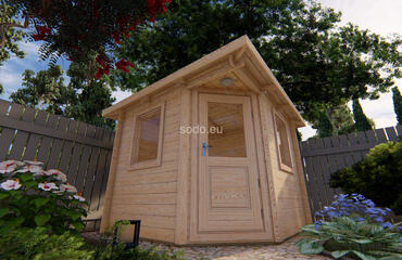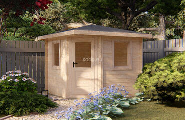 Esta cabaña con techo a cuatro aguas tiene paredes de 28 mm y suelos de 19 mm, con un espacio interior de 5,3 m². Es ideal para decorar el jardín o como almacén ligero. Camión completo: 32 unidades. Tamaño del paquete: (650 x 3000 x 1200)