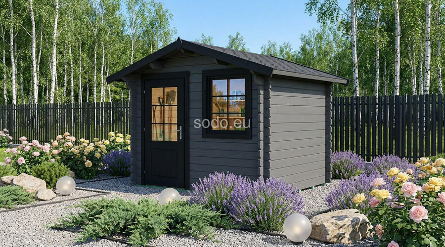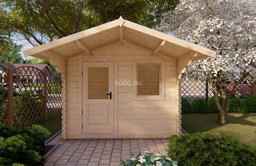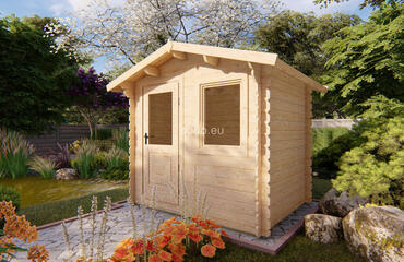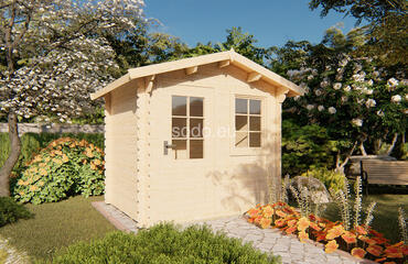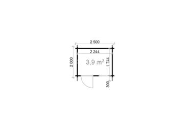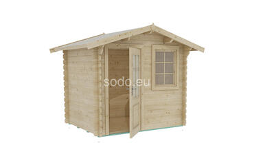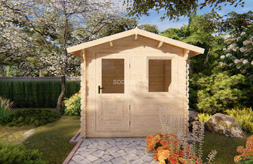 Cabaña con techo a dos aguas, paredes de 28 mm y suelos de 19 mm, con una superficie de 3,9 m². Ideal para uso decorativo en jardines. Camión completo: 40 unidades. Tamaño del paquete: (600 x 2500 x 1200)