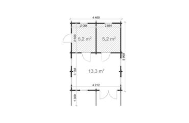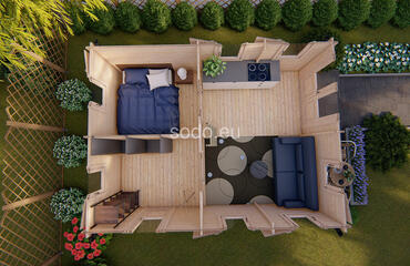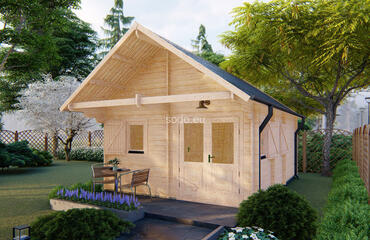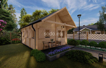 Cabaña premium con techo a dos aguas, paredes de 44 mm y suelos de 19 mm, con una superficie de 23,7 m². Ideal para estudio, oficina o uso residencial ligero. Camión completo: 6 unidades. Tamaño del paquete: (880 x 6000 x 1200). (600 x 6000 x 1200)