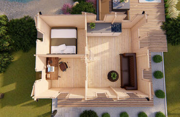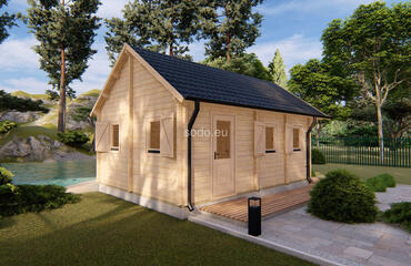 Construida con paredes de 68 mm de grosor y tablas de suelo de 28 mm, esta cabaña de 23,1 m² ofrece un mejor aislamiento y resistencia estructural. Su techo a dos aguas y sus puertas totalmente acristaladas la hacen adecuada para su uso durante todo el año o para uso profesional. Camión completo: 6 unidades. Tamaño del paquete: (880 x 6000 x 1200), (600 x 6000 x 1200)