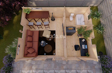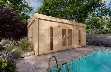 Esta caseta de jardín cuenta con paredes de 44 mm de grosor y suelos de 19 mm, lo que ofrece un espacio interior de 23,8 m². Con doble acristalamiento, cuatro ventanas y una distribución limpia y moderna, es ideal para una amplia oficina en casa, un estudio o una habitación de invitados.