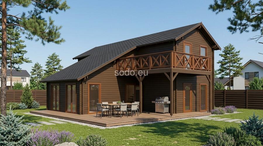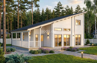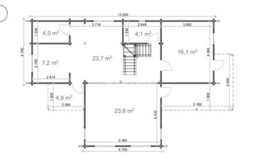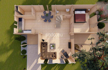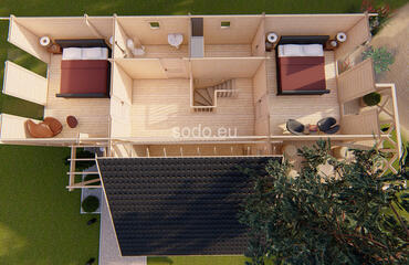 Porto es una villa de dos plantas con una superficie interior de 132,4 m². Con paredes de 68 mm y suelos de 28 mm, está diseñada para familias numerosas o para uso comercial.