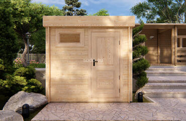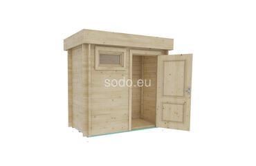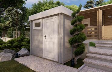Mini cabaña con techo plano, paredes de 28 mm y suelos de 19 mm, con una superficie de 2,0 m². Ideal para guardar herramientas o como espacio utilitario compacto. Camión completo: 50 unidades. Tamaño del paquete: (500 x 2500 x 1200)