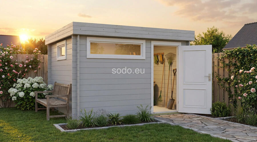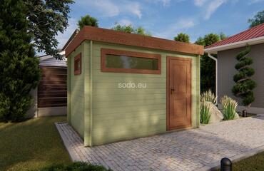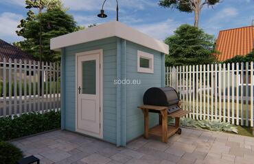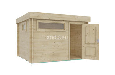 El techo plano y las paredes de 28 mm encierran un espacio interior de 6,7 m². Construido con tablas de suelo de 19 mm para uso estacional. Camión completo: 24 unidades. Tamaño del paquete: (650 x 3600 x 1200)
