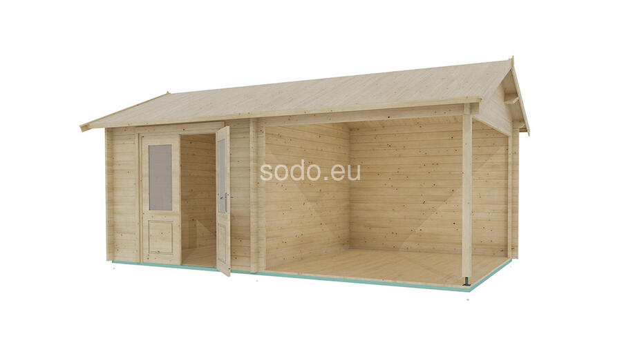 Esta caseta de jardín con techo a dos aguas cuenta con paredes de 44 mm de grosor y suelos de 19 mm, con un espacio interior de 7,4 m². El doble acristalamiento y la distribución de una sola habitación la hacen perfecta para un estudio luminoso o un refugio.