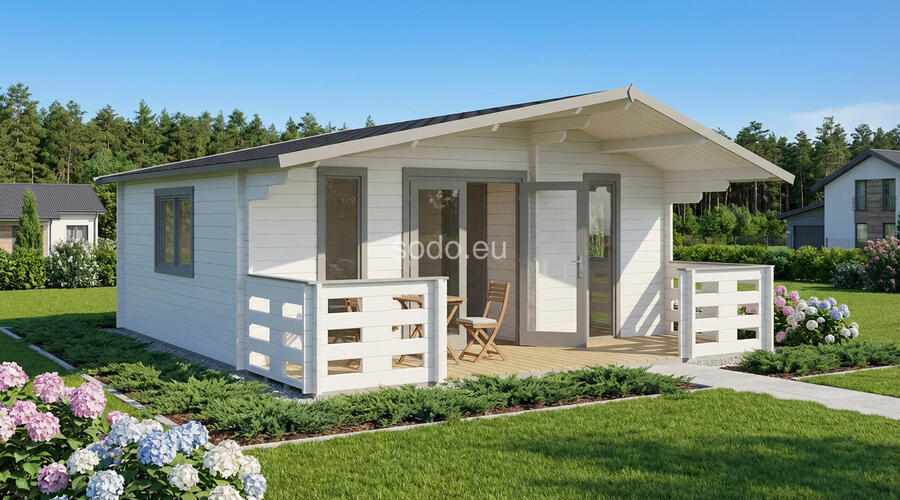 Cabaña de jardín económica con paredes de 44 mm y tablas de suelo de 19 mm, con una superficie de 23,8 m². Ideal para un uso multifuncional en el jardín. Camión completo: 8 unidades. Tamaño del paquete: (870 x 6000 x 1200), (500 x 4300 x 1200)