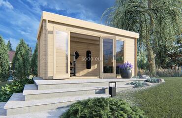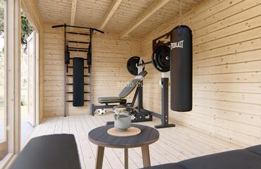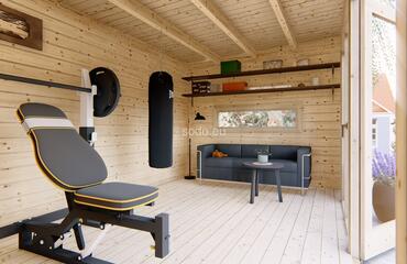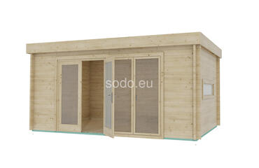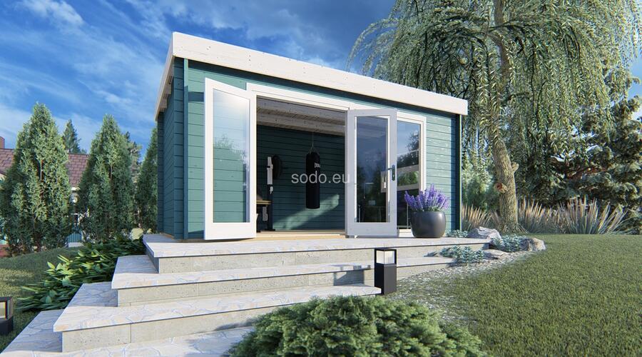 Esta oficina doméstica tiene una superficie de 12,8 m² y está construida con paredes de 44 mm de grosor para mejorar el aislamiento. La estructura incluye tablas de suelo machihembradas de 19 mm y ventanas de doble acristalamiento, lo que la hace adecuada para su uso durante todo el año como oficina doméstica, espacio de trabajo creativo o refugio compacto.