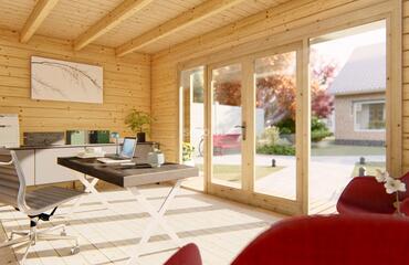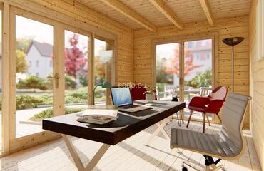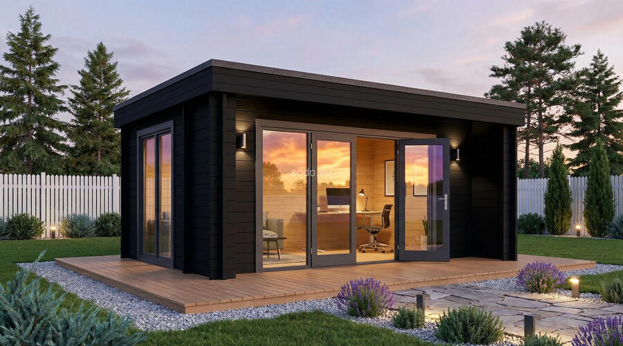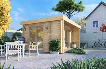 Nuuk es una oficina doméstica compacta con techo plano, paredes de 44 mm y suelos de 19 mm, que ofrece 12,8 m² de espacio interior. Su diseño minimalista es perfecto para una pequeña oficina o un refugio en el jardín. Camión completo: 10 unidades. Tamaño del paquete: (820 x 5200 x 1200), (ST600 x 2200 x 1720)