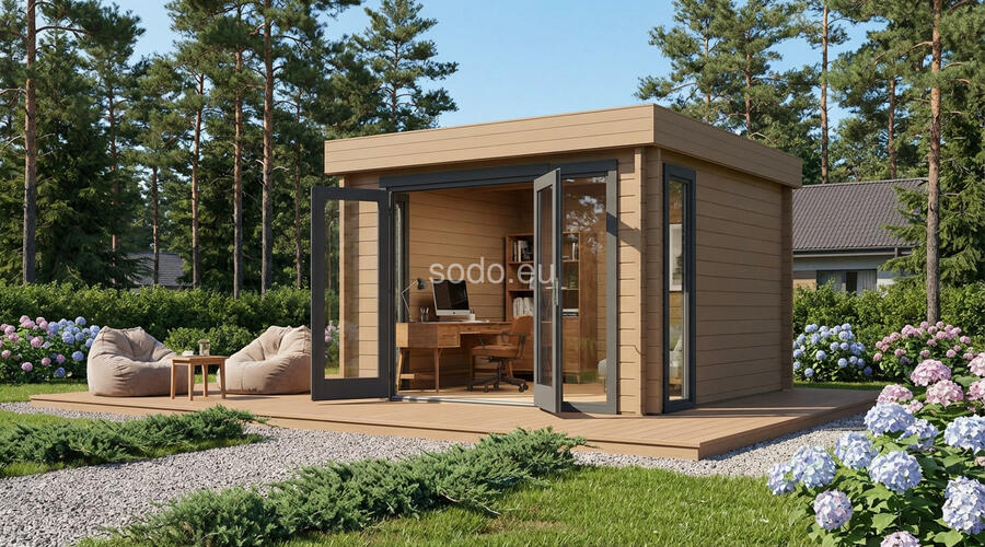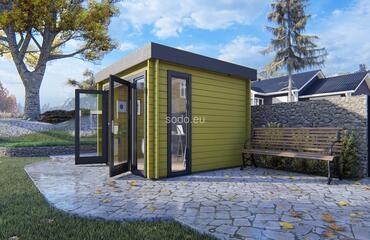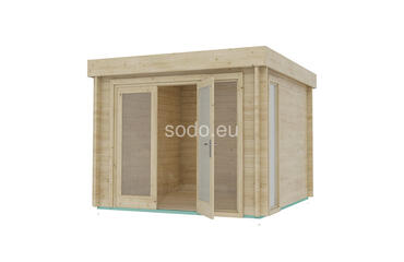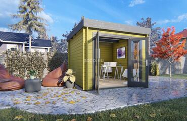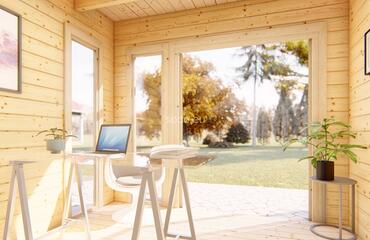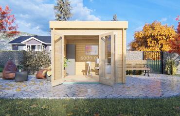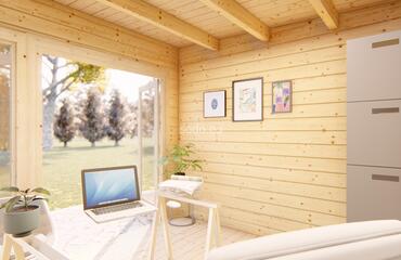 Togo es una cabaña minimalista de 44 mm y suelos de 19 mm, con una superficie de 7,4 m². Ideal para utilizarla como rincón de lectura, pequeño estudio o refugio tranquilo. Camión completo: 24 unidades. Tamaño del paquete: (870 x 3200 x 1200)