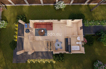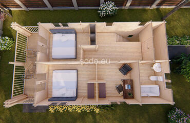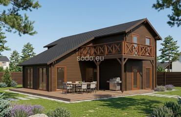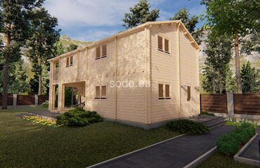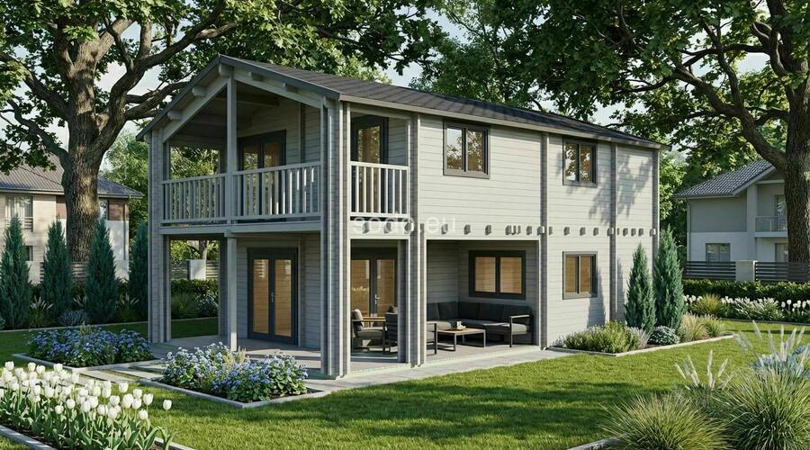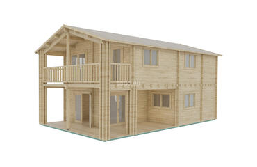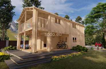 Esta villa de dos plantas tiene una superficie de 86,1 m² y está construida con paredes de 68 mm y suelos de 28 mm. Su distribución en varias habitaciones permite un uso residencial a tiempo completo con proporciones elegantes.