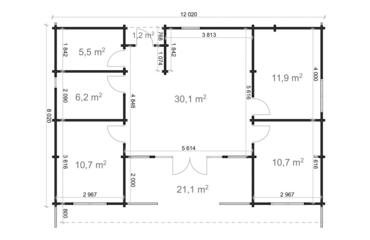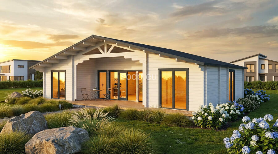 Una casa de generosas dimensiones, con 114,9 m² de superficie interior, construida con madera de 68 mm y rematada con un tejado a dos aguas. Cuenta con 4 habitaciones y suelos de tablas de 28 mm, ideales para una distribución diáfana. Camión completo: 1 unidad. Tamaño del paquete: (880 x 6000 x 1200), (880 x 6000 x 1200), (880 x 6000 x 1200), (880 x 6000 x 1200), (880 x 6000 x 1200), (880 x 3000 x 1200), (ST900 x 2500 x 2200)