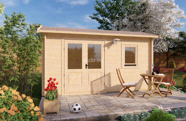 Versión económica con paredes de 44 mm y suelos de 19 mm, que ofrece 9,3 m² de espacio. Distribución de una sola habitación adecuada para un uso funcional en el jardín. Camión completo: 16 unidades. Tamaño del paquete: (670 x 4700 x 1200)