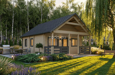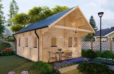 Versión económica con paredes de 44 mm y techo a dos aguas, con una superficie de 23,7 m². Construida con tablas de suelo de 19 mm y acristalamiento básico para uso estacional. Camión completo: 6 unidades. Tamaño del paquete: (880 x 6000 x 1200), (850 x 4700x1200)