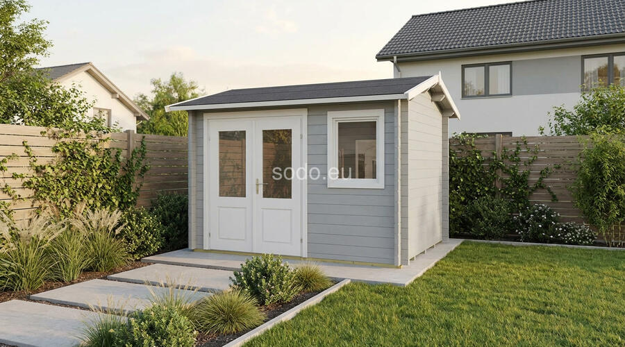 Caseta de jardín con paredes de 44 mm y tablas de suelo de 19 mm. Decorará su patio y le permitirá guardar de forma ordenada sus herramientas y utensilios de jardín. Camión completo: 18 unidades. Tamaño del paquete: (770 x 3600 x 1200)