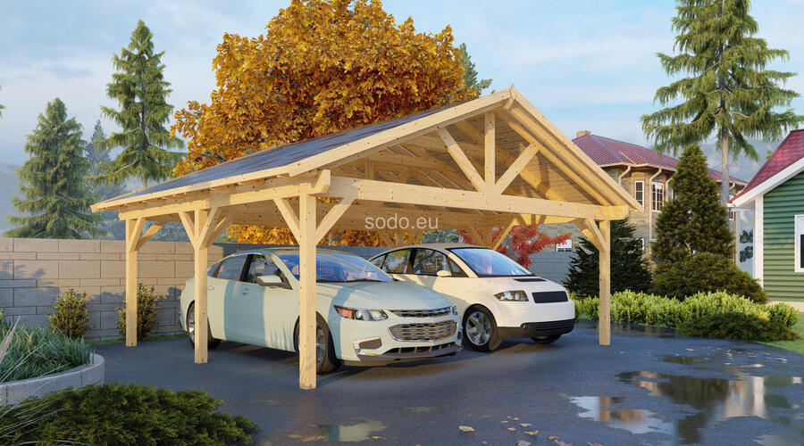 Pablo is a premium carport with 35.7 m² of roof area, offering generous space for parking and storage. Its robust build and sleek lines make it a stylish addition to any property.