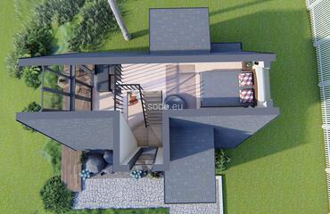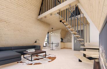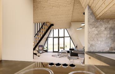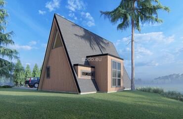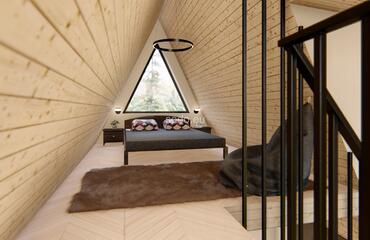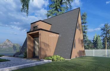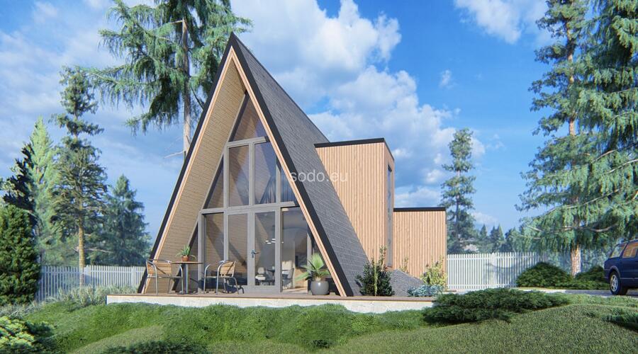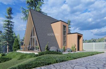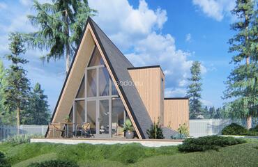 This A-shaped house is designed with front and back glass walls, perfect for enjoying the outside view and nature surroundings. It features a loft area for sleeping, making it a great space-saving solution. This house is designed for building in a picturesque area, providing a comfortable living space that blends with the natural surroundings. The popularity of this design is growing, as more and more people are looking for a way to connect with nature and live in a sustainable and eco-friendly way. With its unique and modern design, this A-shaped house is perfect for anyone who wants to live in a comfortable and stylish home while enjoying the beauty of nature.