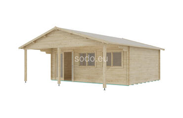 With 44mm walls and 19mm floor boards, this 26.9 m² cabin offers a well-balanced layout under a gable roof. Double-glazed windows and solid construction make it ideal for residential or studio use.