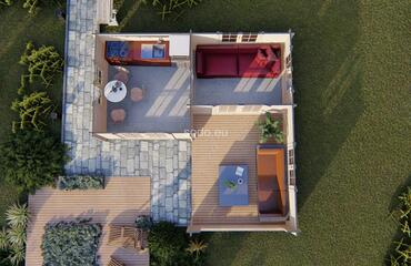Solstice combines indoor comfort with outdoor charm, featuring 14.2 m² of internal space and a generous 10.4 m² terrace. Built with 44 mm walls, 19 mm floor boards, and a hip roof, it includes three zones—ideal for lounging, working, or entertaining.