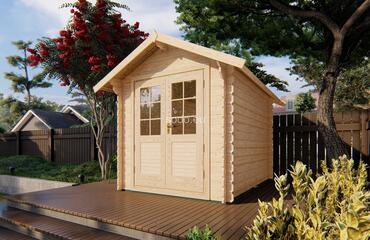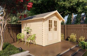 This slightly extended version of Ariadne provides 6.6 m² of internal space under a gable roof. With 28 mm walls and 19 mm floor boards, it’s perfect for compact workspaces or hobby rooms.