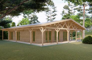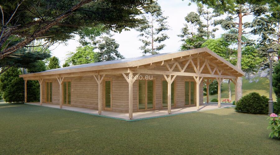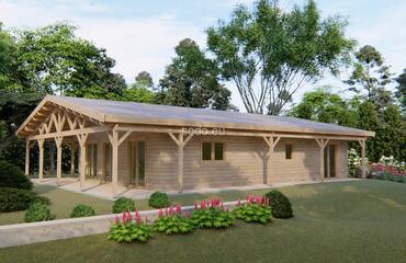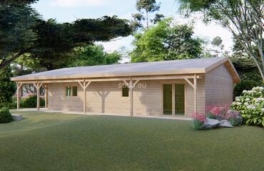 Hugo provides 113.3 m² of internal space with a gable roof and 44 mm timber walls. It includes 5 rooms and 28 mm floor boards, offering a refined and spacious layout.