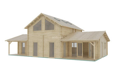 This spacious villa offers 109.4 m² of internal area with a gable roof and 58 mm thick walls. It includes 6 rooms and features durable 19 mm floor boards for year-round comfort.