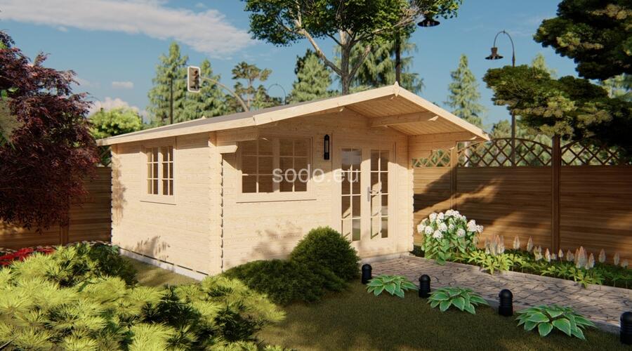 Alva 4x4 posiada dwuspadowy dach i panele ścienne o grubości 28 mm, które otaczają 14 m² powierzchni wewnętrznej. Deski podłogowe o grubości 19 mm zapewniają trwałość konstrukcji, dzięki czemu nadaje się ona do użytku gospodarczego, rekreacyjnego lub lekkiego mieszkalnego.