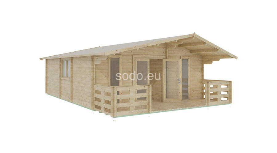 Domek z czterospadowym dachem, ścianami o grubości 28 mm i podłogą z desek o grubości 19 mm, o powierzchni 10,8 m². Układ dwóch pomieszczeń pozwala na wielofunkcyjne wykorzystanie w ogrodzie.