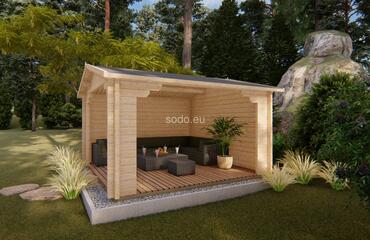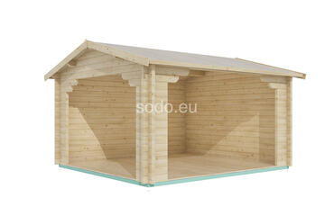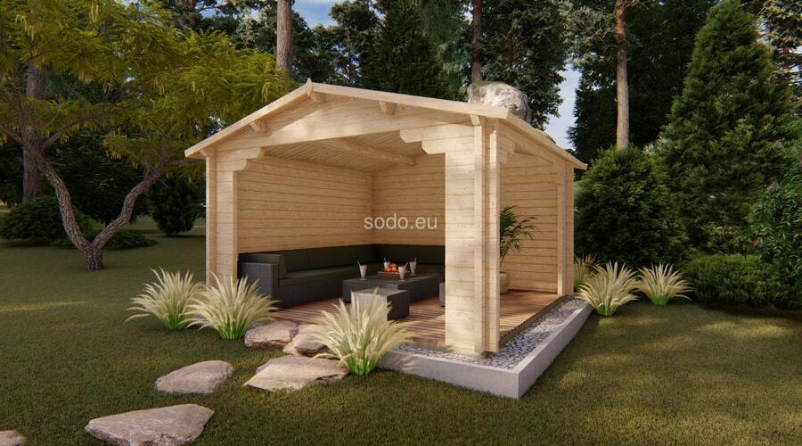 Ta pergola na świeżym powietrzu ma dwuspadowy dach i drewniane słupki o średnicy 68 mm. Dzięki deskom podłogowym o grubości 28 mm i powierzchni dachu wynoszącej 21 m² idealnie nadaje się do wypoczynku w zacienionym ogrodzie.