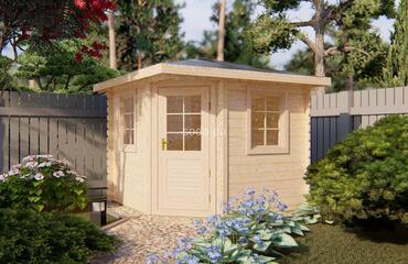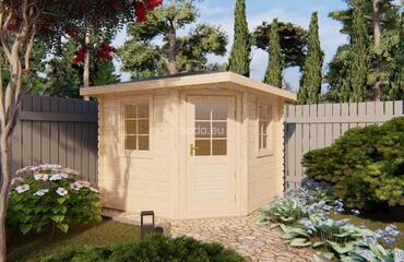 Najmniejszy model Elyra ma dwuspadowy dach, ściany o grubości 28 mm i deski podłogowe o grubości 19 mm. Oferuje 6,8 m² powierzchni wewnętrznej — idealnej na minimalistyczne studio lub magazyn ogrodowy.