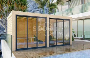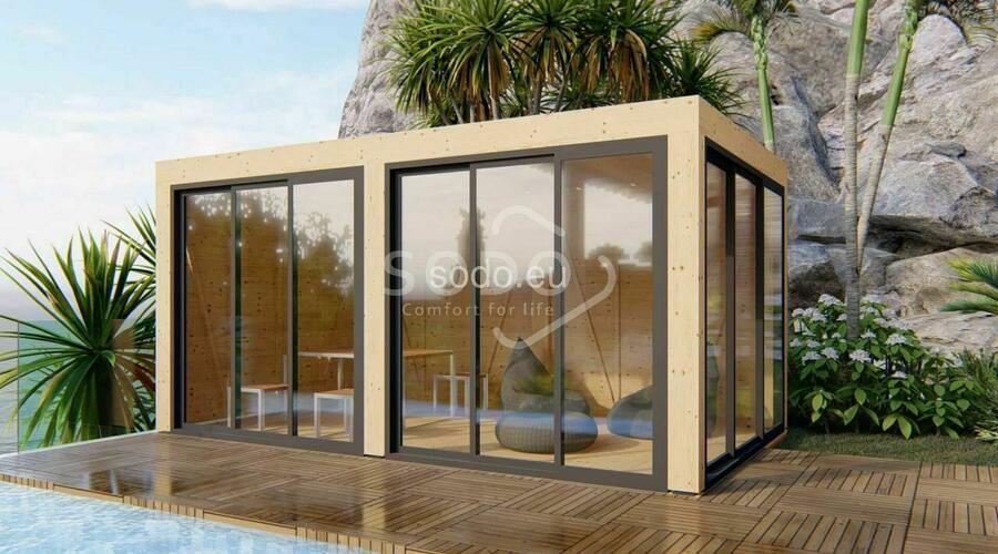 Luksusowa pergola o powierzchni wewnętrznej 14,3 m². Idealna na przestronne studio lub pokój gościnny.