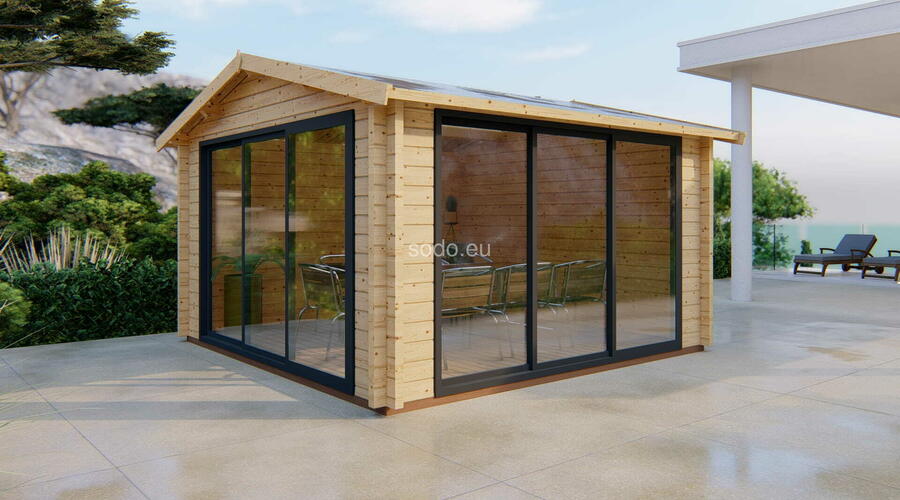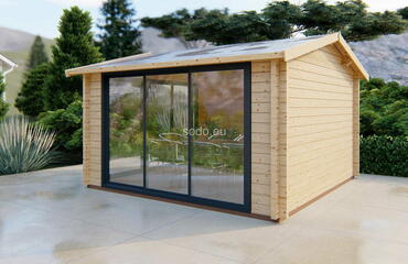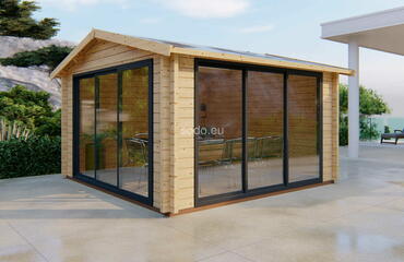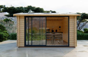 Ta pergola na świeżym powietrzu ma dwuspadowy dach i drewniane słupki o średnicy 68 mm. Dzięki deskom podłogowym o grubości 28 mm i powierzchni dachu wynoszącej 21 m² idealnie nadaje się do wypoczynku w zacienionym ogrodzie.