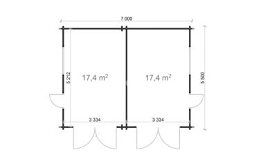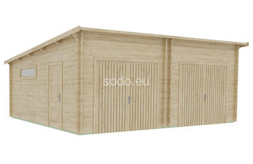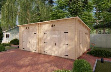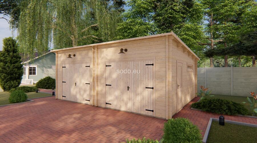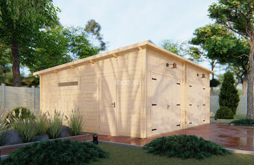 Esta garagem premium oferece 34,8 m² de espaço interno com telhado de duas águas e paredes de 44 mm.