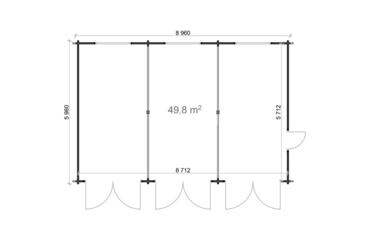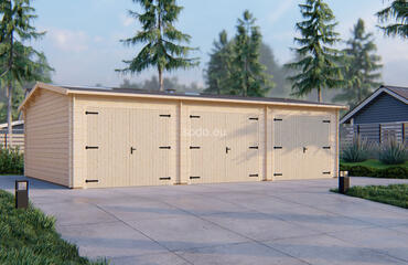 Spacious and robust, this garage spans 49.8 m² with a gable roof and 44 mm wall thickness. Perfect for large vehicles or dual-purpose use.