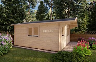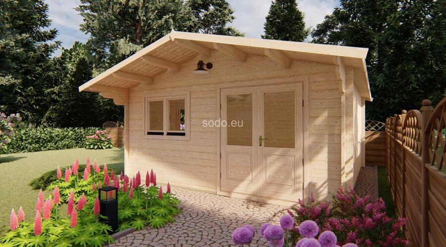 Compacto e funcional, este modelo inclui 22 m² de espaço interno com paredes de 68 mm, tábuas de piso de 28 mm e um telhado de duas águas com 2,7 m de altura. Ideal para armazenamento, espaço para passatempos ou um refúgio tranquilo.