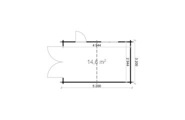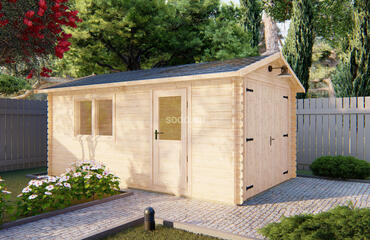 Uma garagem compacta com telhado de duas águas e paredes com 44 mm de espessura, oferecendo 14,3 m² de espaço interno. Ideal para guardar um único veículo.